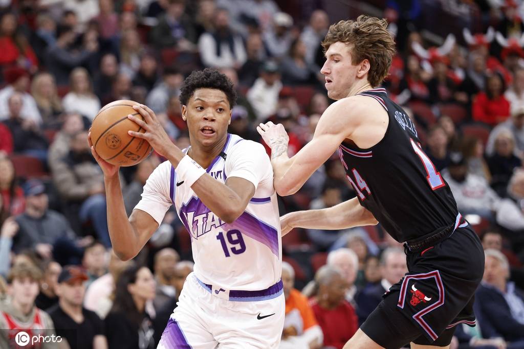第一节比赛开始,公牛与爵士展开了激烈争夺,双方在场上交错得分,呈现出胶着的态势。公牛的武切维奇表现出色,首节贡献11分,包括一记三分球;而爵士的森萨博则火力全开,单节狂砍21分,状态热得发烫,并投中三记三分球。经过一番角逐,爵士在第一节结束时以39-36领先。